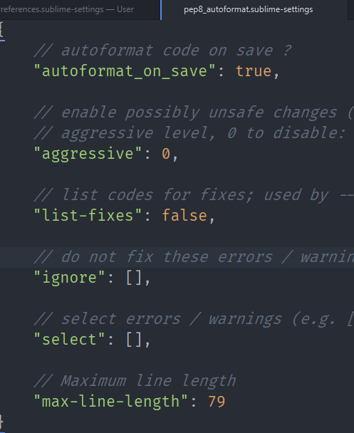 Preferences - Package Settings - Python PEP8 Autoformat - Settings - Default 에